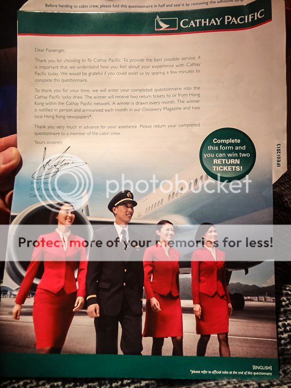 Est-ce parce que je n'ai cessé de mitrailler la cabine ? toujours est-il que je reçois un questionnaire dans lequel j'étalerai ma déception du catering et l'excellence du service